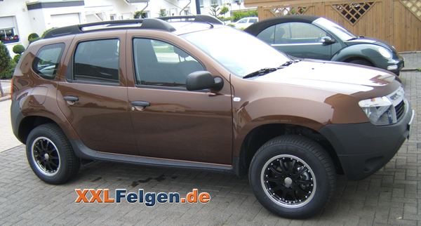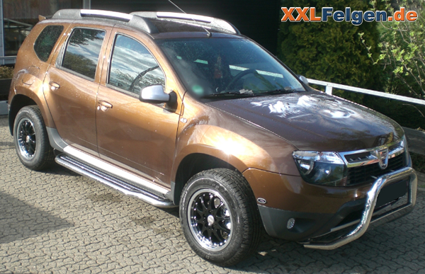 Dacia Duster mit schwarz lackierten Alus von DBV! Das ist eine prächtige Wahl! Dieser Dacia Duster 4×4 1.6 16V 100 SD hat die Felgen 7.5×16 5×114,3 ET40 DBV S-AUSTRALIA montiert. Die Somerreifen sind von Nexen: der 225/60R16 SP06. Alle Alufelgen sind im Shop als Kompletträder bestellbar. Sie können auch Felgen mit Reifen von Continental, Uniroyal oder Semperit bei uns ordern. Klar auch die günstigen Reifen von Westlake, Nexen oder Fortuna. Der Dacia Duster ist eine echt preisgünstige Alternative im Crossover Segment.Es gibt den Dacia als Fronttriebler oder wie zu sehen als 4×4 Allrad. Wenn es neue Dacia Duster Felgen, Reifen und oder auch Kompletträder sein sollen, sind Sie hier genau richtig.